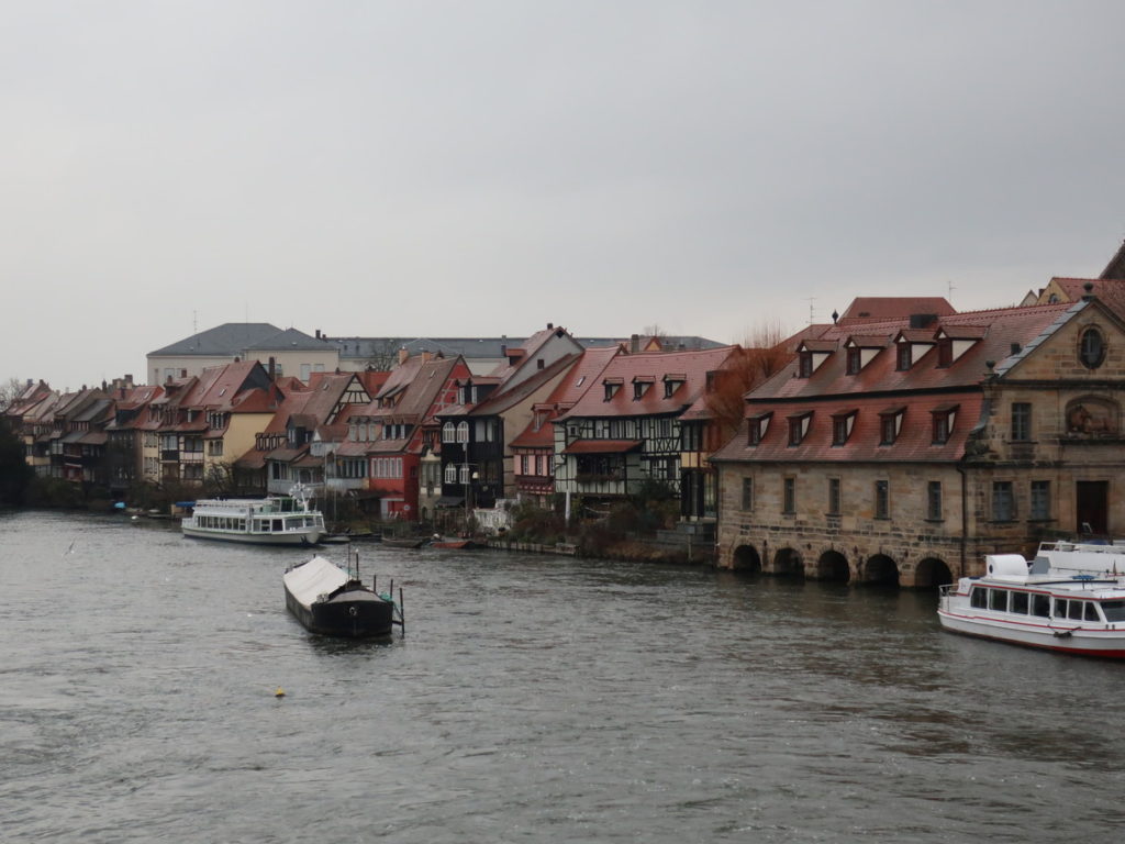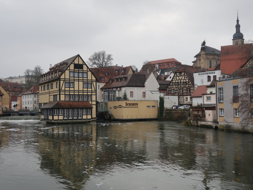 ゴスラー同様に昔からの景観が破壊されることなく残っている貴重な街です。レグニッツ川の中州に建つ旧市庁舎がシンボル的存在ですが、その周辺の旧市街と川が織り成す街全体の情景が最大の魅力です。川を挟んで聖職者と庶民が分かれて住んでいたため、壮麗な宗教建築が集中しているエリア(大聖堂や宮殿など)と素朴な家々が立ち並ぶエリア(小ヴェネツィアなど)で違った雰囲気が味わえます。ビールの街としても知られ、多くの醸造所があります。中でもラオホビアと呼ばれるスモークした麦芽を用いたビールが有名です。ニュルンベルク(Nuremberg)からのアクセスが良いので、クリスマスマーケット等でニュルンベルクを訪れる際には立ち寄ることをお勧めします。